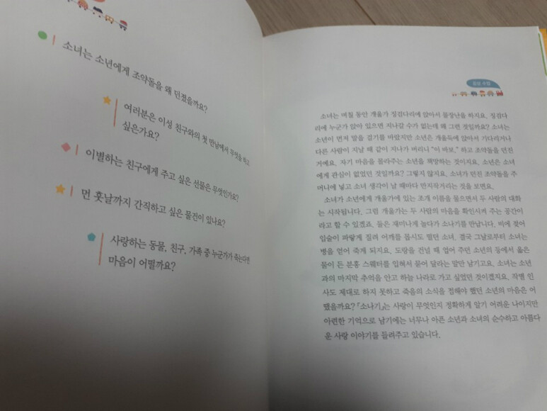 초등 고학년만 되도 책 읽고 엄마가 질문하는 거 표정에서부터 싫어해서 질문 안했는데, 질문을 읽어보고 혼자 생각하게 하는 것도 좋은 방법인거 같아요.