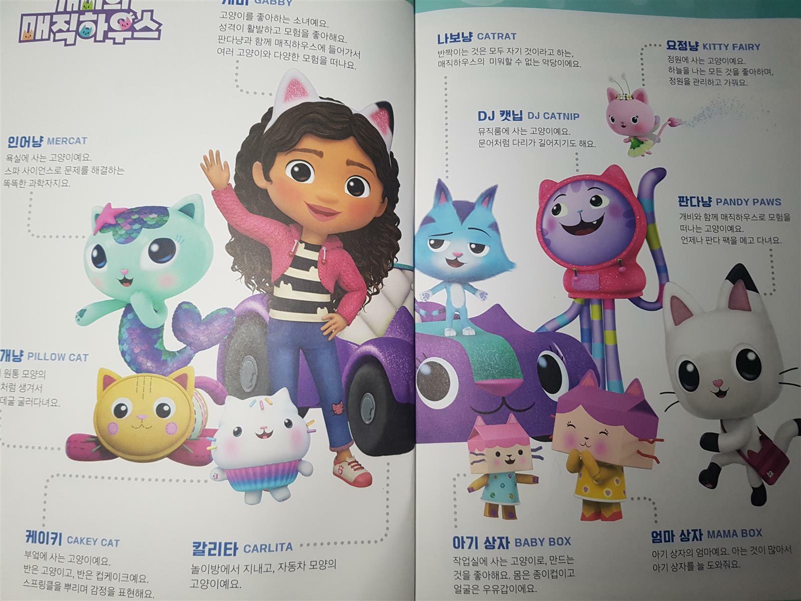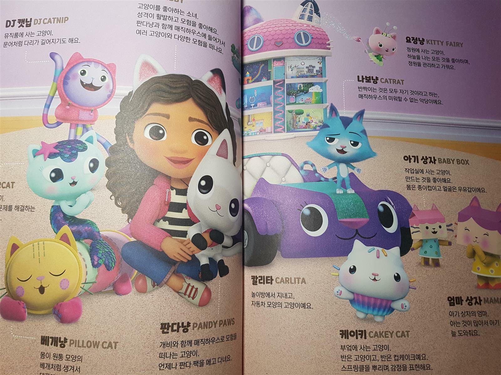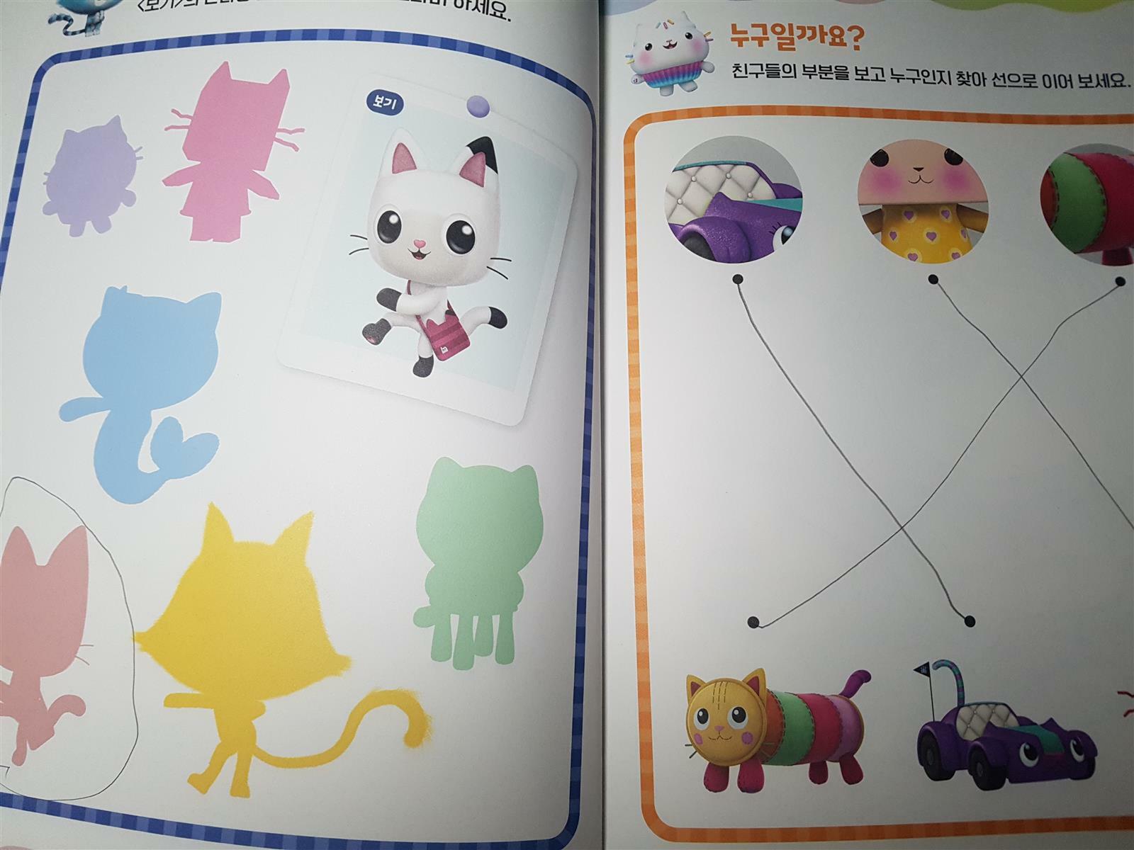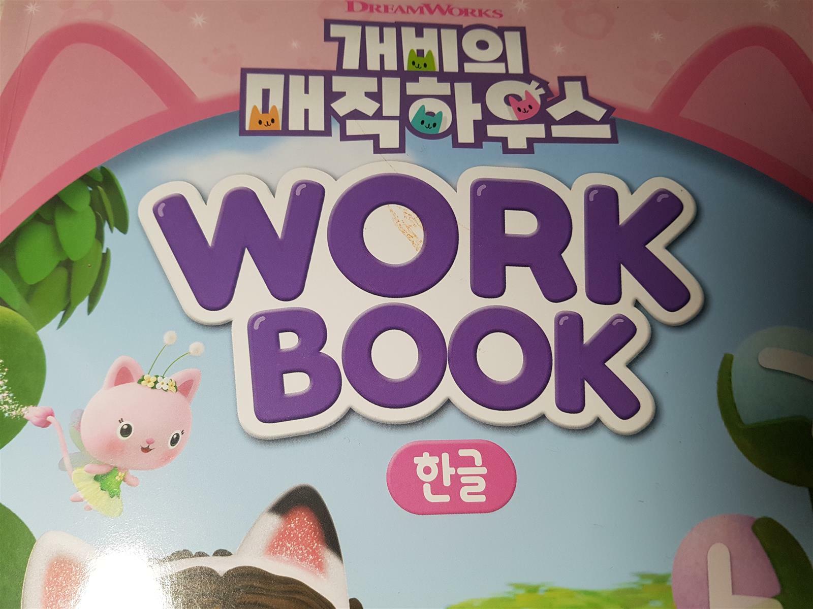 2021년부터 넷플릭스에서 방영되고있는 개비의 매직하우스는 귀여운 냥이(고양이)들이 사는 알록달록 신비한 마법의 세계에서 펼쳐지는 이야기를 다루고 있어요. 개비와 판다냥과 함께 매직하우스로 모험을 떠나는 이 영상은 실사와 애니메이션을 오가는 시리즈라고 해요. 인기가 많은 개비의 매직하우스의 등장인물이 나오는 한글 워크북을 저희 아이와 해봤어요.