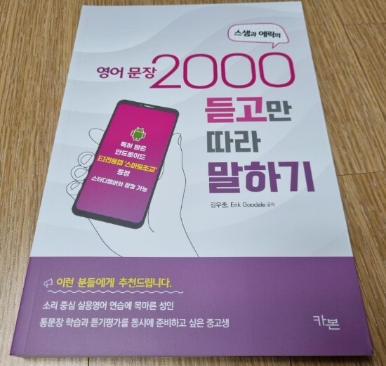 목표는 책의 2000문장을 텍스트를 보지 않고 듣고만 따라 말할 수 있는 것이다. 며칠동안 스마트 조교를 이용하여 연습하니 조금씩 귀가 트이는 것 같다. 꾸준히 하면 2000문장을 듣고만 따라 말할 수 있을 것이고, 그리고 나면 혼자서 영어로 말하기도 좀더 유창하게 할 수 있을 것 같다는 자신감이 생긴다.