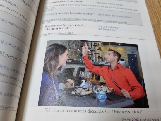 365일 사용할 수 있는 스마트조교 앱 쿠폰이 있어서 꾸준히 트레이닝 하기에 좋다. 깨알 같은 영어 문장이 가득 쓰여 있다. 자연스러운 예문과 폭넓은 어휘, 숙어, 표현이 반영된 문장, 친절한 각주, 문장과 어울리는 이미지가 이 책의 장점이다. 문법, 숙어, 어휘, 미드, 영화, 학교, 컴퓨터, 축구 등 주제별 문장이 총 2000가 수록되어 있다. 영어 문장과 한글 문장, 아래쪽에 영단어나 숙어, 문장 형식에 대한 보충 설명이 있다. 책에 제시된 생활 영어 문장을 보면 결코 어렵지 않다. 그런데 한글해석을 보고 영어로 말하라고 하면 입이 떨어지지 않는다.