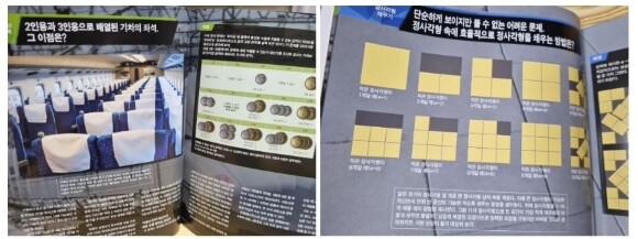 특집 기사 첫 번째인 '퍼즐로 키우는 수학적 사고'에서는 그동안 우리가 생각해보지 못한 내용을 다루고 있어서 흥미롭다. 기차의 좌석이 2인용, 3인용으로 배열된 것은 수학적 이점이 작용한다.. 2인용, 3인용이면 일행이 몇 명이라도 모르는 사람과 같이 않거나 혼자만 앉게 되지 않는다. 프로베니우스의 동전 교환 문제와 그것을 연결지어 설명한다. 이외에도 동전 던지기, 페르미 추정, 정사각형 채우기 등의 문제를 자세히 다룬다.