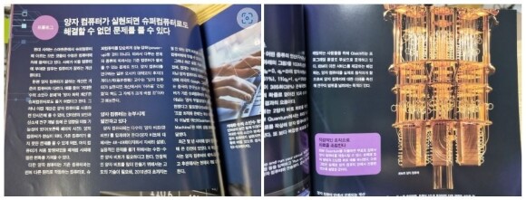 두 번째 특집 기사는 세계가 주목하는 차세대 계산기 양자 컴퓨터 2022이다. 양자 컴퓨터에 대해서는 처음 듣는데 양자론의 성질을 이용해 계산하는 컴퓨터이다. 그 양자 컴퓨터의 원리에 대해서 정말 자세히 소개하고 있어서 어렵지만 어떤 것인지 이해할 수 있었다. 게다가 양자 컴퓨터의 저 복잡한 구조를 사진으로 볼 수 있어서 이해하는데 많은 도움이 되었다. 이렇게 이해하기 어려운 개념도 자세히 다루어주니 고등학생 과학도서로 정말 유용하다.