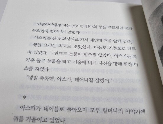 아스카는 자신의 생일을 기억하고 축하해주는 엄마와 오빠를 통해 자신의 소중함을 느끼고 싶었을 것이다. 그런 아스카의 마음도 몰라주고 엄마는 생일을 잊은 것에 대한 미안한 마음은 조금도 표현하지 않는다. 어떻게 아이에게 태어나지 말았어야 했는데라는 말을 할 수 있을까. 아스카는 그때부터 목소리를 잃어버린다. 아스카는 하시모토 선생님과 이야기를 나누면서 엄마와도 이렇게 이야기를 나누고 싶었다고 생각한다.