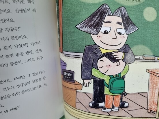 원하는 선생님과 막상 지내보니 또 그 선생님 때문에 힘들어서 다른 선생님을 원하게 되고, 계속 계속 선생님이 바뀌지만 결국 우리에게 관심이 많은 선생님이 진짜 우리가 원하는 선생님이었음을 건우는 깨닫는다. 관심이 곧 잔소리라는 것을. 내가 아이일 때는 어른들의 잔소리를 정말 듣기 싫어했는데 어른이 되어 보니 나도 잔소리를 하고 있다. 마왕쌤의 품에 꼭 안겨 있는 건우의 마지막 모습이 감동적이다. 아이가 관심있어하는 주제라서 재미있게 읽고 선생님에 대해서 이야기를 나누어 보았다.