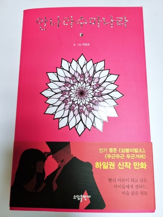 10년 전 출간되었던 안나라수마나라가 넷플릭스 드라마가 개봉되면서 다시 사랑받고 있다. 핑크, 노랑, 파랑의 예쁜 표지를 가진 3권의 책이 안나라수마나라의 웹툰 원작이다. 화려한 표지를 넘기면 까만 바탕의 그림이 등장한다. 색깔은 리을이 '안나라 수마나라'라고 외칠 때면 나에게도 힘든 일이 모두 사라지고, 행복만 가득한 마술이 이루어질 것 같은 기분이 든다. 마술을 믿습니까? 안나라수마나라!