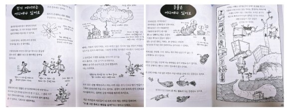지구에 다양한 생명이 탄생하고, 탄소와 물이 순환하며 어디든 존재하는 전기 에너지에 대한 이야기를 읽으면서 아이들이 세상을 보는 눈을 넓혀 준다. 이런 지식을 아는 아이와 모르는 아이는 분명 세상을 바라보는 눈이 다를 것이다. 양치류, 겉씨식물, 균류 등 식물의 진화에 대해서도 알려주고, 박테리아, 해면동물, 자포동물, 연체동물 등 정말 다양한 분야에 대해서 다룬다. 양장본의 270여쪽이 되는 분량의 지식책이지만, 이렇게 중간 중간 내용을 이해할 수 있도록 그림이 있어서 재미있게 읽을 수 있다. 책제목처럼 이 책을 제대로 잘 이해하고 나면 테리 덴톤 박사님처럼 '만물박사'가 되어 있을 것 같다.