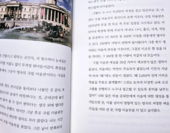 혼자서 미술관이나 박물관을 천천히 걸으며 생각하는 시간을 참 좋아한다. 아쉽게도 혼자 그런 시간을 즐길 기회가 많지 않지만 이렇게 책을 읽으며 작가의 생각을 따라가보는 것도 즐겁다. 저자인 윤상인님은 영국에 살면서 여행사를 운영하고 런던대학교에서 미술사를 전공했다. 영국과 한국을 오가며 미술해설가로 활동하는 미술에 조예가 깊은 분이라서인지 책을 통해 영국의 역사, 문화, 미술사에 대해 많은 것을 배울 수 있었다.