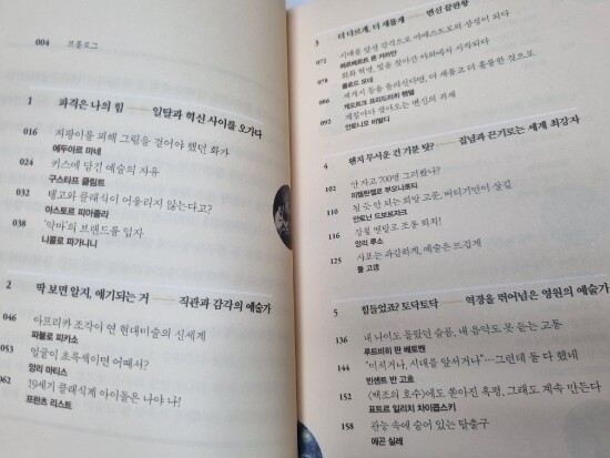 그림과 음악이 적당히 번갈아 나오니 읽는 재미가 있다. 이야기를 읽으면서 음악을 듣고, 미술 작품을 감상하다보면 시간이 금방 지나가버린다. 한 권의 책으로 예술과 좀더 가까워진 기분이다.