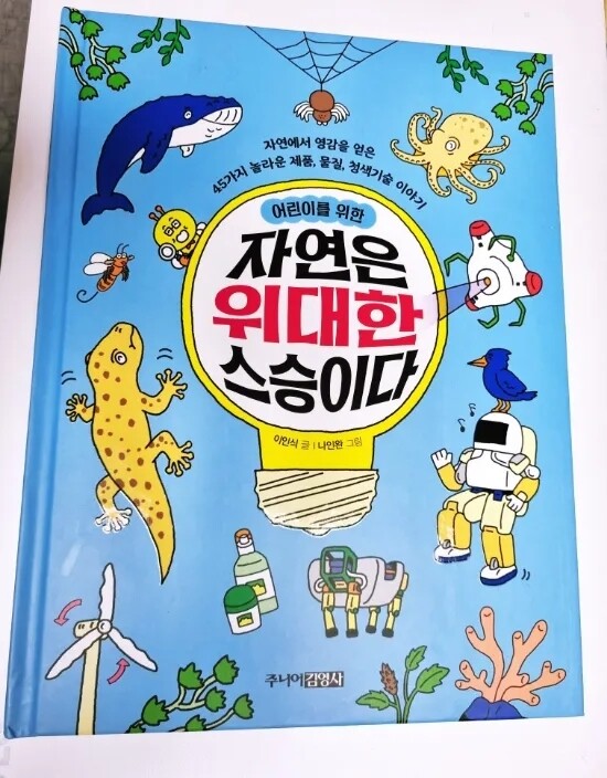 <어린이를 위한 자연은 위대한 스승이다>는 자연에서 영감을 얻은 45가지 놀라운 제품, 물질, 청색기술 이야기가 담겨 있는 책으로 <자연은 위대한 스승이다>라는 책의 10주년을 기념하기 위해 어린이를 위한 만화로 나왔다고 한다. 자연을 본뜬 위대한 발명, 자연을 본떠 만든 물질, 자연에서 배우는 건축, 생물을 모방하는 로봇, 인체 부품의 보안 이렇게 5개의 장으로 구성되어 있다. 아이들은 우선 만화로 되어 있어서 스스로 꺼내서 재미있게 읽는다. 만화로 주요 내용을 소개하고, 과학용어들은 줄글로 자세히 설명해준다. '생물영감'. '생물모방'과 같은 용어는 처음 들어보았는데 아이들에게는 더 생소한 용어일 것이다. 이런 과학 용어를 자세히 설명해주고, 그 사례를 만화로 쉽게 이해할 수 있다.