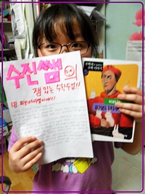 페르마 하면 유명 수학학원의 이름이 떠오를만큼 꽤 알려진 이름이지만 사실 수학공부를 좋아한 엄마도 그가 무슨 수학적 업적을 남겼는지는 잘 알지 못했는데 이름만 들었던 수학자가 들려주는 수학이야기 시리즈 중 가장 처음으로 페르마의 ’약수와 배수 이야기’ 를 접하게 되었습니다. 배수와 약수는 초등학교 5학년과 중1 수학과정 중에서 아이들을 가장 괴롭히는 단원 으로 유명한데 그 내용을 들여다 보면 어른들에게도 만만치 않은 내용이 많아 아이들이 늘 자신없어 하는 단원입니다. 그런데 그 약수 배수를 이야기로 접할 수 있다는것이 이 책이 가진 가장 큰 매력이고 사실 내용을 읽기 전까진 약간의 선입견-어려울 것이다 혹은 따분할 것이다-을 가졌었는데 책을 다 읽고 나니 얼마든지 수학이야기도 재미 있게 풀어낼 수 있음을 알게 되었습니다. 페르마의 얼굴이 이리 생겼음을 첨 알았네요^^ 그 유명한 수학자가 들려주는 시리즈의 첫 권을 페르마로 만났습니다.^^ 책을 읽기전 길라잡이 코너를 통해 이 책의 장점과 책이 기존의 수학서들과 어떻게 다른지를 보여주고 있는데 책을 다 읽고 나니 고개를 끄덕일 수 있었습니다. 이야기는 모두 6교시의 수업에 따라 진행되었는데 첫번째 수업에서는 볼링과 포켓볼 등을 이용하여 삼각수 , 사각수의 개념을 풀어내었는데 아이들이 초등학교에서 여러 가지 문제라는 단원의 단골 문제가 바로 이 삼각수 사각수의 개념이었음을 처음 알았습니다. 어디서 많이 보았던 그림일것입니다.^^ 두번째 수업에서는 우정을 나타내는 우애수와 자기자신을 제외한 약수를 더하면 자기 자신이 되는 완전수에 대해 알아보는 시간이었는데 이런 수가 있음을 처음 알았을 뿐더러 숫자에 의미를 부여하는 페르마나 피타고라스 등의 수학자들이 얼마나 수를 사랑했는지를 그리고 그들의 노력덕분에 수학이라는 학문이 진일보 했음을 아는 시간이 되었습니다. 사실 본문 내용이 아주 쉬운 내용은 아니기에 아이들이 중간 중간 내용을 정리해 주는 만화 코너를 통해 다시한번 쉽게 이해하도록 배려하는 구성이 돋보입니다.^^ 페르마의 세번째 수업은 소수에 관한 수업으로 어디선가 들은 적이 있던 메르센의 소수를 200년만에 증명해낸 프랭크 낼슨 콜의 일화는 천재를 뛰어넘는 천재들은 어딘가에는 존재함을 이야기하면서 수업은 점점 더 배수와 약수의 개념을 이해 시키기 시작하고 드디어 본격적인 수업이 시작됩니다. 만화와 함께 가장 마음에 들었던 코너는 역시 수업을 정리해주는 코너인데 내용이 만만치 않음에 조바심 많은 엄마의 눈에는 이런 코너가 있음에 괜시리 안도감을 느낍니다.^^ 네번째 수업인 소인수 분해에서 다섯번째 수업인 생활속에서 최대공약수 최소 공배수 찾기, 여섯번째의 배수 이야기는 아이들이 직접 수업에서 듣는 내용이어서 더욱 반가웠고 첫번째 수업에서 여섯번째 수업까지를 들은 아이들은 자연스레 배수와 약수의 정확한 개념과 그와 관계된 에피소드, 수학자들의 이야기를 들을 수 있어 중학생이 된 첫째도 5학년이 된 둘째에게도 좋은 시간이 되었습니다. 흔히 수학은 골치아픈 혹은 어려운 과목이자 학습으로만 생각합니다. 그러나 이 책을 접하면서 수학도 이야깃거리가 되고 문제 풀지 않고 생각하는 수학이 존재함을 느꼈 고 아이들 역시 어려울거란 선입견과 달리 쉽게 풀어준 책이 예상보다 재미있다고 하며 한 번 읽기보다는 여러번 읽어봐야 겠다고 합니다. 명성대로 잘 만들어진 책으로 코너코너에 새심한 배려를 느낄 수 있었습니다. 수학을 싫어했거나 좋아하는 아이들에게 추천합니다.^^ 간단한 독후활동도 해보았네요^^ - 다양한 수학용어를 알 수 있는 시간이 되었다고 합니다.^^
