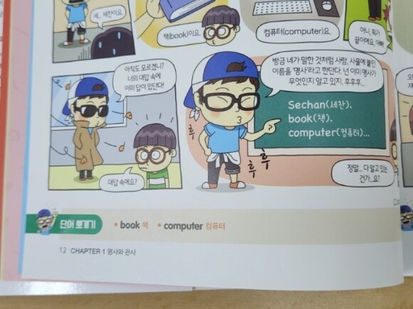 이 책에는 혼공 선생님을 묘사한 아빠와 그의 자녀인 세찬이, 은별이가 일상생활에서 겪는 다양한 에피소드와 초등 영문법의 내용을 소개하고 있어요. 그래서 만화만 읽고 있어도 저절로 영문법의 기초 개념을 이해할 수 있더라고요