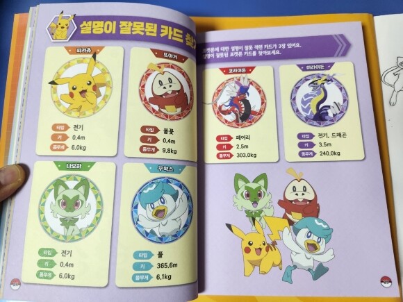 포켓몬에 대한 설명이 잘못 적힌 카드가 3장있단다