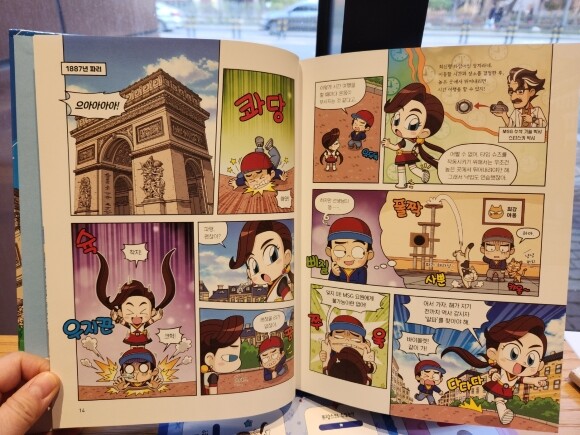 시간여행으로 프랑스 파리에 도착한 강파랑은 에펠탑이 보이지 않는다며