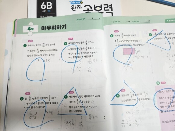 서술형 풀기 어려워 하는 초딩이 이번에 완자 공부력 초등 수학 문장제 기본을 만나보았습니다. 교재 양이 적당해서 그런건지 아니면 교재 끝나고 나면 책걸이로 달콤강정이를 먹을수 있어서 인지 완자 공부력 초등 수학 문장제 책 오자마자 풀기 시작하더니 다 풀었습니다. 책걸이로 사주는 닭강정의 힘이 아주 효과가 좋습니다
