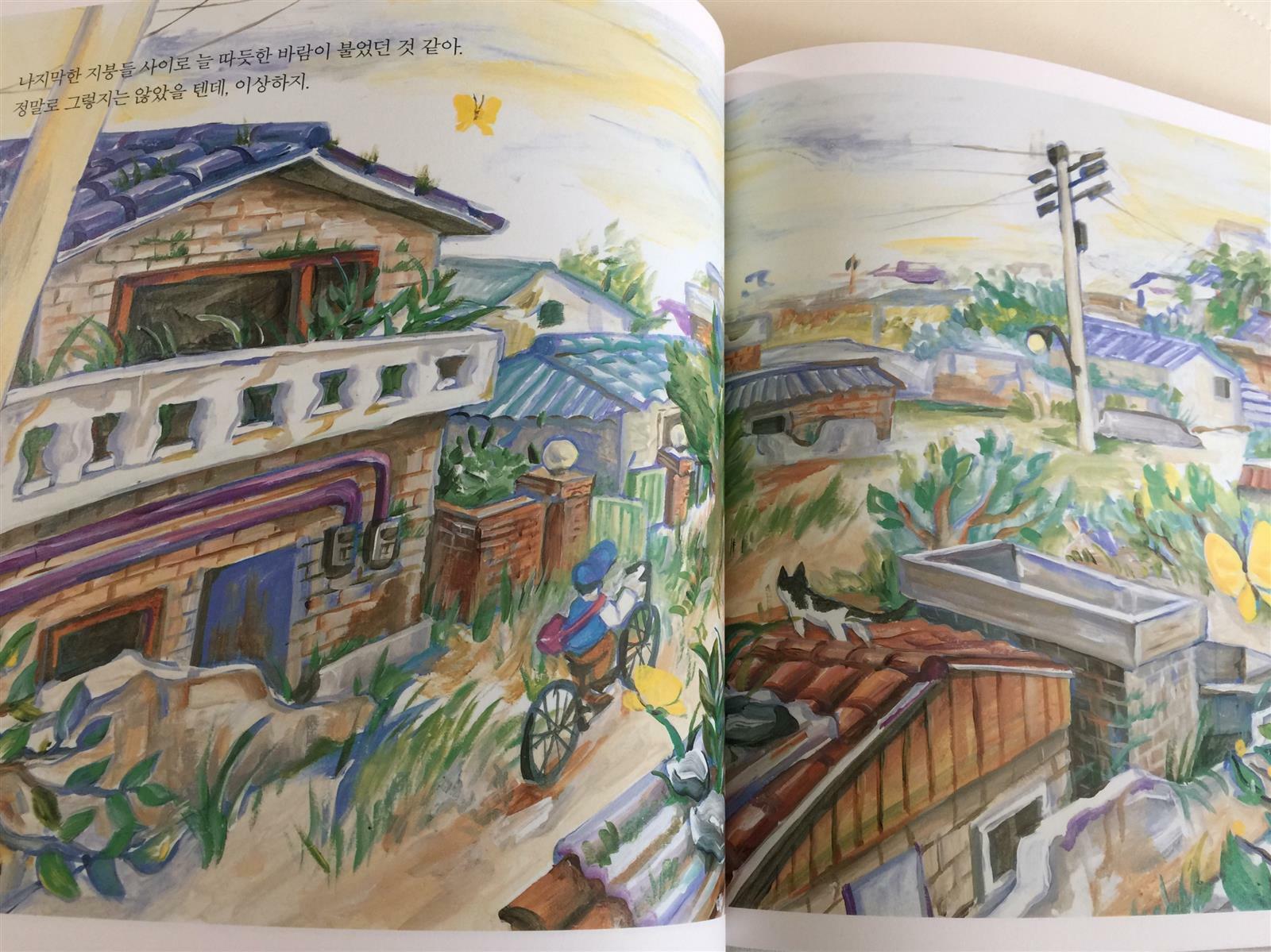 "할아버지 댁이 있던 동네는 온통 회색빛인 담벼락과 낡은 집이 많았습니다.