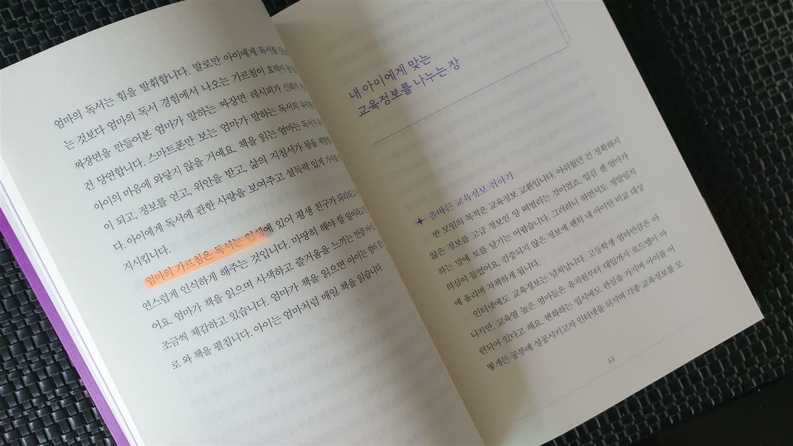 독서는 아이도 엄마도 생각하는 사람이 되게 한다고 해요. 그리고 책을 읽는 엄마는 내면이 단단해 지고, 독서는 여유 있는 엄마로 만들어 준다고 하는데 저자 말대로 바빠서 책 읽은 시간도 없는데 책이 여유를 만들어준다니 아이러니한 이야기로 들리긴 했지만 이내 그렇게 말한 이유를 알게 되었답니다.