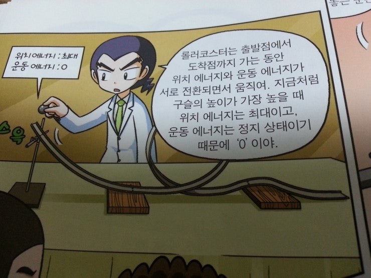 롤러코스터를 이용한 위치에너지와 운동에너지 얘기인거 같아요...