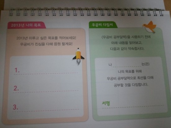 우공비 공부달력이에요.