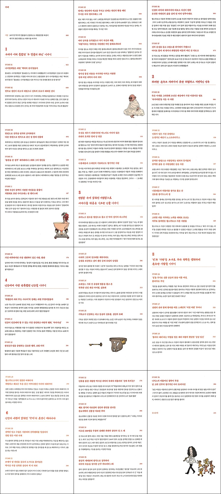 구성되어 있습니다. 각 에피소드들은 1명의 위인에 대한 이야기도 있고, 가문의 이야기인 경우도 있으며, 유물에 집착한 인물들 이야기도 있지만