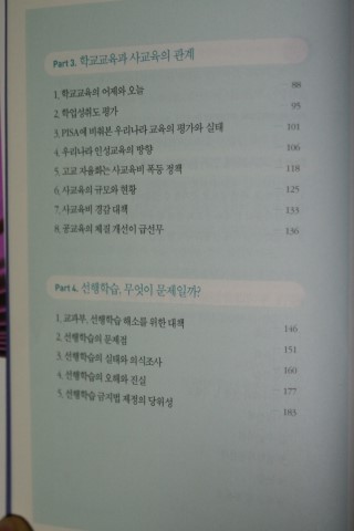 그러나 이 책에서 지적하고 있는 우리나라의 교육현실에 대한 설명과 분석은 학부모로서도 많은 공감이 간다. 30여년전 중고교시절을 회상해봐도 역시 이 책에서 나열하고 있는 현상과 별반 차이가 없었다. 책을 읽고 난 소감은 과연 우리나라가 성공적인, 세계적으로 최고의 교육환경을 만들 수 있을까 하는 안타까운 의심만 들었을 뿐이다...