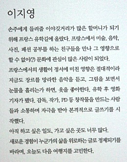 저자는 손주에게 들려줄 이야깃거리가 많은 할머니가 되기 위해 프랑스 유학길에 올랐다 한다..
