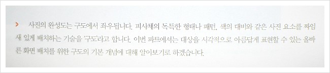 저자의 말에 따르면 사진의 완성도는 구도에서 좌우된다고 한다.