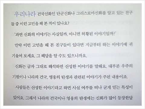 책의 내용은 신화에 대한 설명으로 시작하는데