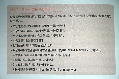 그리고 더이상 사용하지 않는 물건 버리기에 대한 판단기준도 친절하게 설명하고 있다.