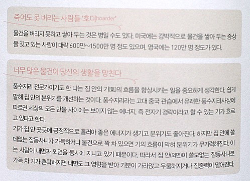 특이하게도 서양인인 저자는 지나친 소비로 인해 구매하였지만 무시되거나 잘 쓰여지지 않는 물건은