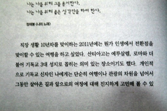 처음 글의 시작은 여느 기행문처럼 여행 출발에 대한 계기에서부터 시작되지만 여행일정에 상관없이 저자가 여행지에서 경험한 에피소드와 그 느낌들을 단편수기식으로 묶어 개별적으로 표현하고 있기에 그렇게 느껴진다.