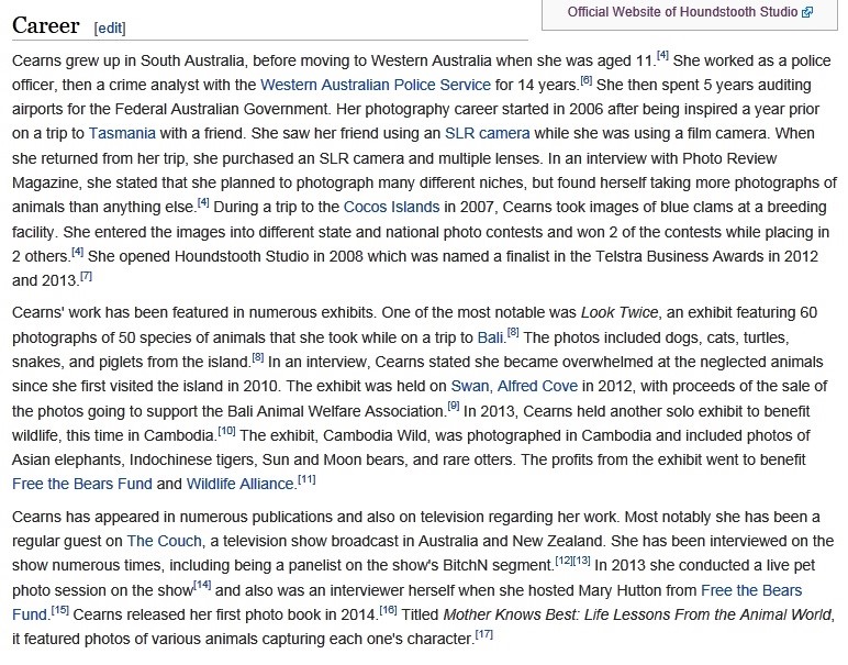 어쨌든 저자가 어떤 사람인지 궁금하여 알아보았더니 호주에 거주하고 있는 사진작가로 애완동물, 야생동물 등 동물사진 전문 사진가라 합니다. 물론 열렬한 동물애호가라 하구요. 동물보호펀드 조성도 하고 있다 하네요. 근데 왜 이 책은 애완동물만 나온건지.. 알렉스 컨스(Alex Cearns). 이름은 남자같더만 이 분, 여성이랍니다... 책에 나오는 저자 소개에도 "그녀의 사진은..."이란 말 나오던데 미처 이 부분 캐치하지 못했군요..쩝.. 수상경력을 살펴보니 2007년부터 나오는데 50여가지의 수상경력이 있다고 합니다. 나름 동물사진계에서는 메이저급인가 봅니다. 그녀의 경력을 보다 보니 특이한 게 있던데요. 범죄분석가로 호주경찰청에서 14년을 근무했다 하네요.. 허거덕.. 사진보니 날카로워 보이긴 합니다.. 사진작가로서의 출발은 2006년 호주 타스매니아 여행이후라 하는군요. 현재는 호주에서 하운즈투스 스튜디오를 운영 중에 있다 하네요. 오우... 부러버라...