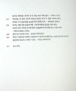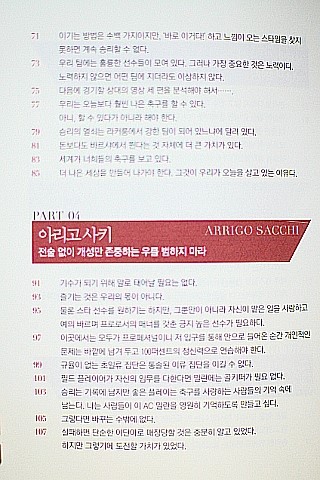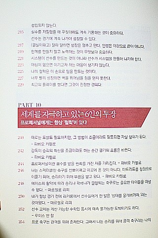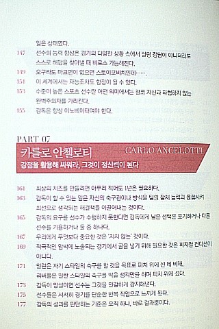 이처럼 책은 리더쉽에 대한 내용도 나오고 조직을 어떻게 운영해가는지에 대한 내용, 조직의 장으로서 어떤 마음가짐과 태도를 가져야 하는지에 대해서도 나온다. 이러한 내용은 감독들이 지금까지 해온 경기중의 행동과 발언, 경기전후의 연습과 훈련, 언론과의 인터뷰 등에서 나타난 내용들에 섞여 나온다. 이게 참 재미있더라는 것인데 뭐. 축구에 관심있으신 분들은 무척 흥미있고 재미있게 읽을 수 있는 책이란건 확실하다. 어디건 그 세계에서 손꼽히는 자리를 차지하고 있는 자라면 뭐든 배울 점이 있다고 생각한다. 그게 마피아라도 말이다. 조직이란건 그만큼 다루기도 이끌어가기도 힘든데, 이 책에 나오는 축구팀 감독중 손꼽히는 명감독들에게도 이러한 조직을 이끄는 힘을 배우는데는 모자람이 없을 것이다. 그러기에 본 도서는 그 점에 대해 손색 없는 책이라고 생각된다. 축구나 스포츠를 좋아하면 더욱 좋고 말이다.