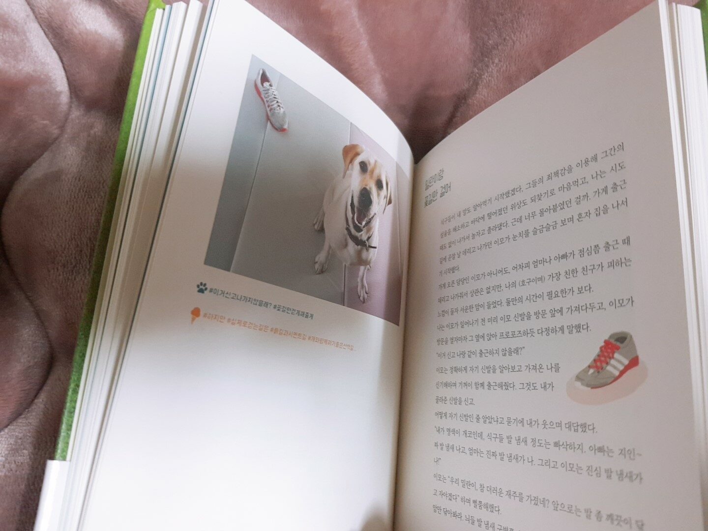 사진만 보고 영상만 보고 귀여워서 예뻐서 무턱대고 입양했다가 생각보다 커서 말썽 많이 부려서 등등의 이유로 파양당하는 개나 고양이가 참 많은데 이 책의 작가님도 처음엔 래브라도는 얌전하고 뭐 어떻고 저떻고 하는 이유로 입양을 했다가 생각과는 다른 성격과 어마무시한 말썽에 치를 떨었던것 같지만, 그래도 끝까지 포기하지 않고 같이 살아감에 있어서 나는 뭣도 아닌 사람이지만 왠지 감사하게 되고 그들이 정말 행복하게 오래오래 살았으면 좋겠다는 생각도 들었다.