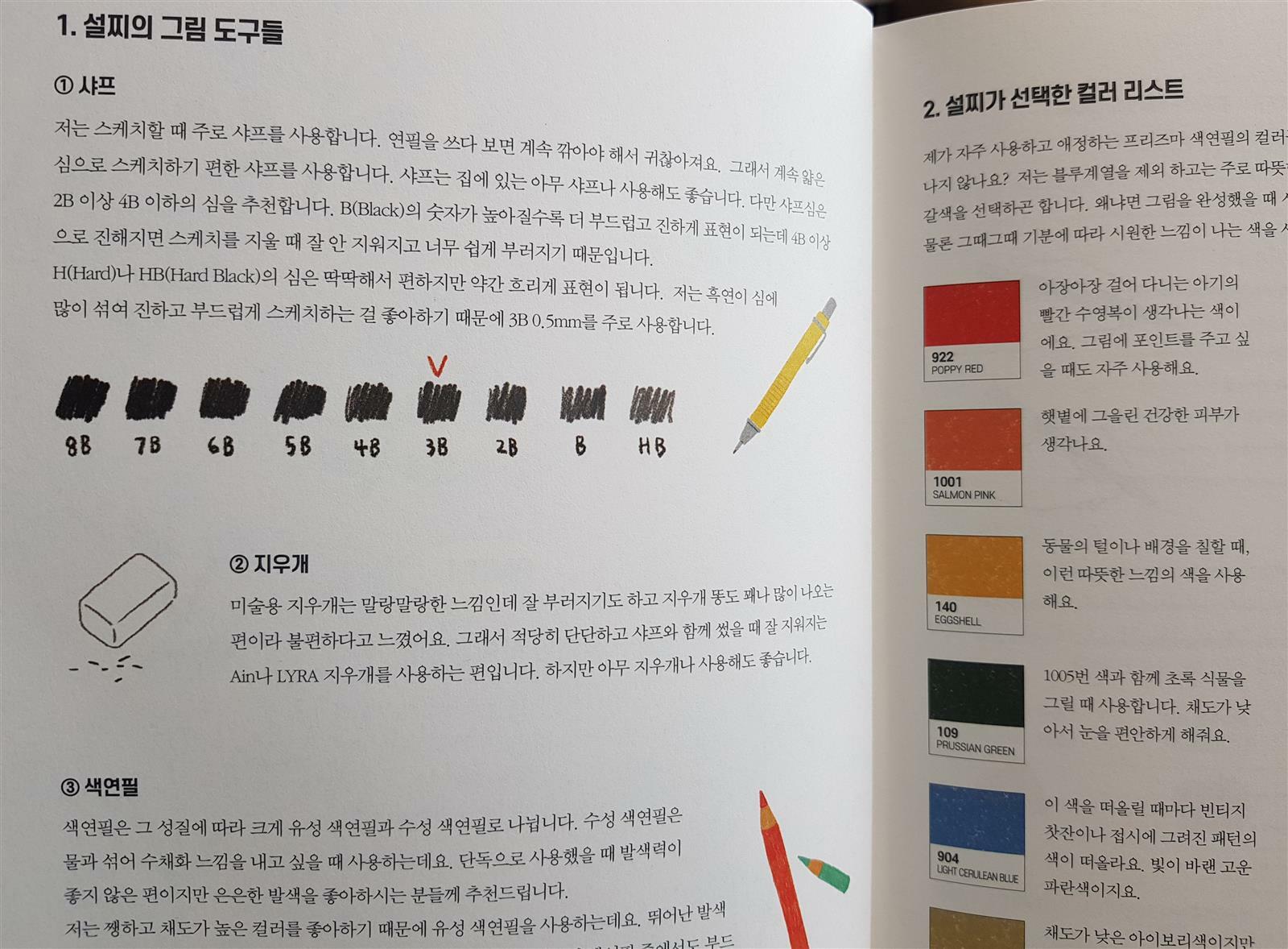 작가님이 사용하싄 프리즈마 색연필을 이용해서 색칠하였고,