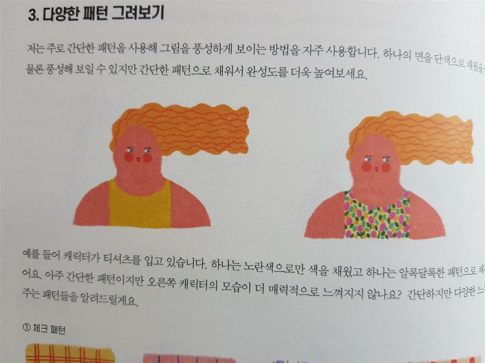 색을 입힌 후에는 간단한 패턴을 활용해서 그림을 풍성하게 보이도록 해봅니다.