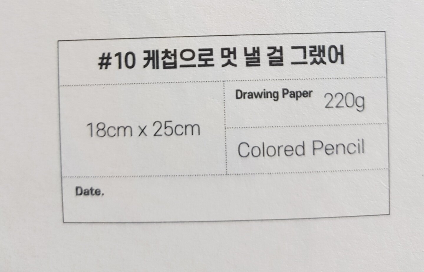 작품명, 사이즈, 종이두께, 사용재료, 날짜를 기록할 수 있는 태그가 있어서