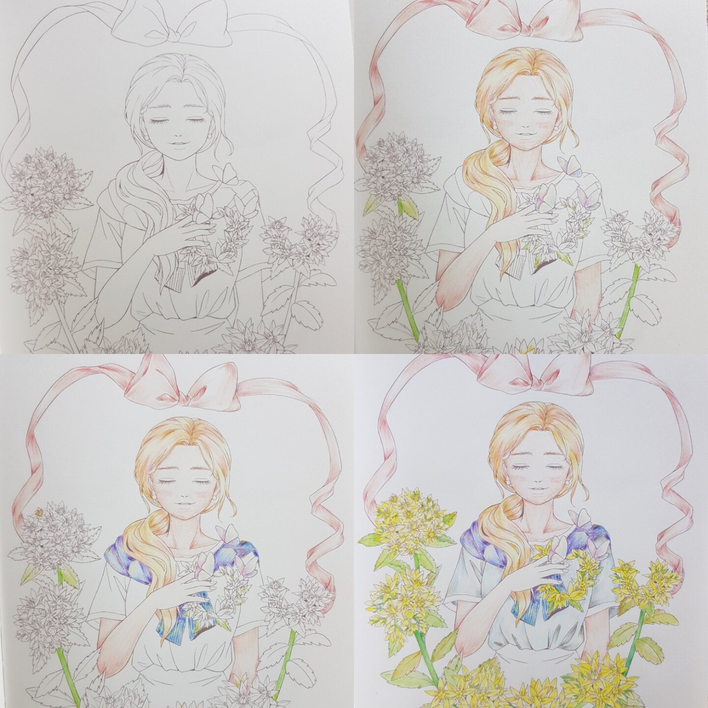남은 예쁜 꽃들과 소녀들을 색칠하면서 차근차근 실력을 키워가고 싶어요~