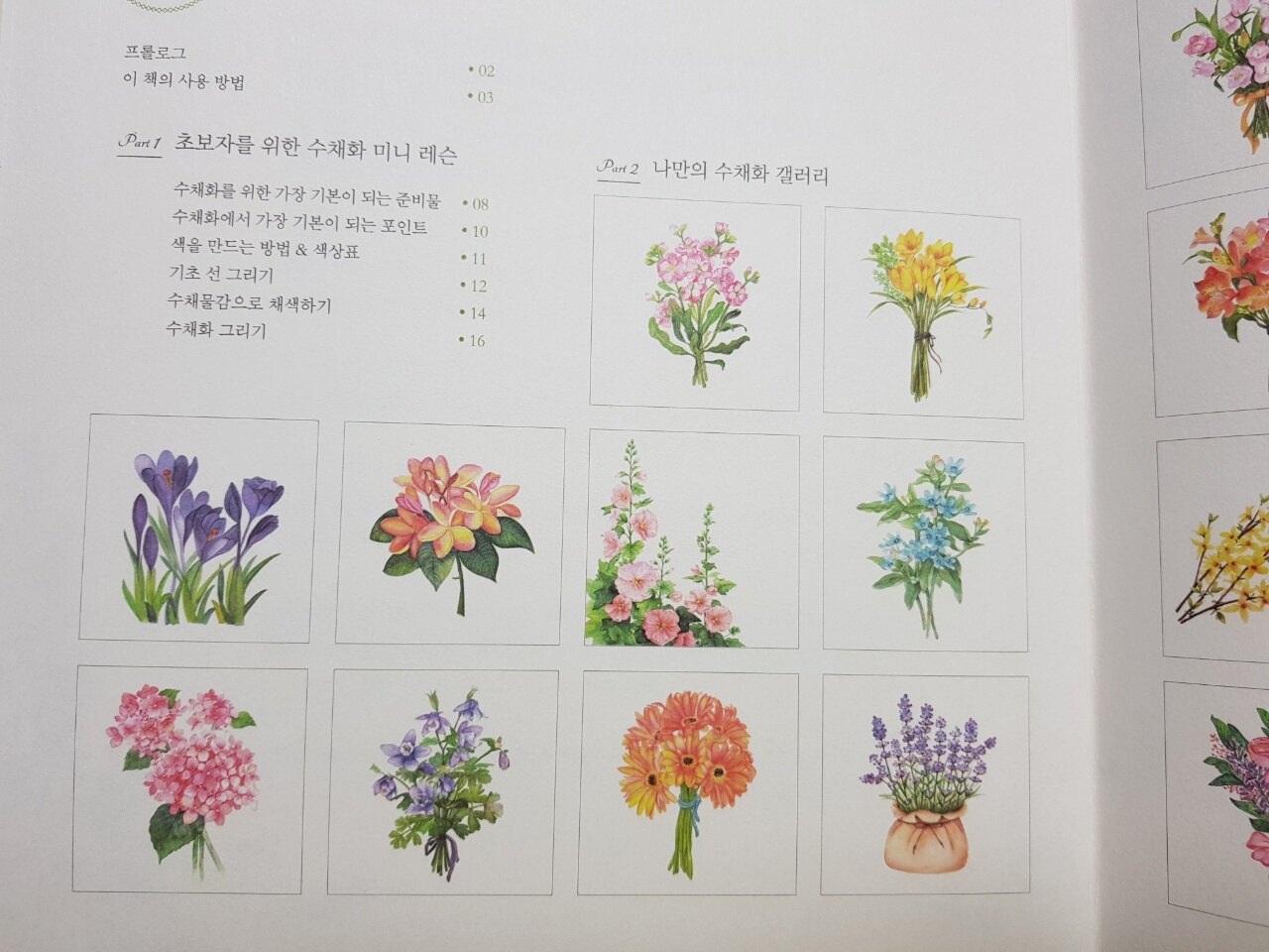 아름다운 꽃다발 수채화로 선물해보세요!" 라는 책의 문구처럼
