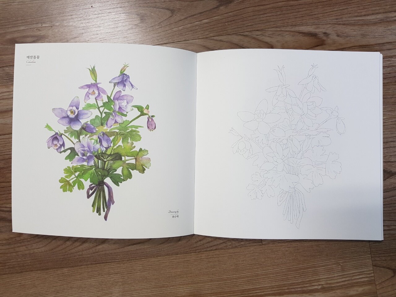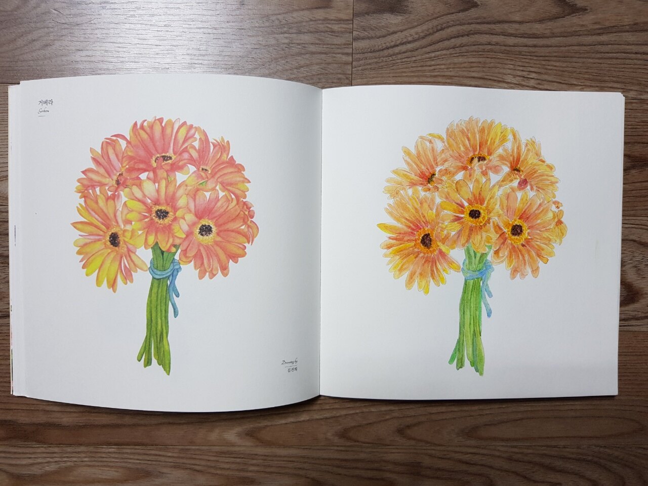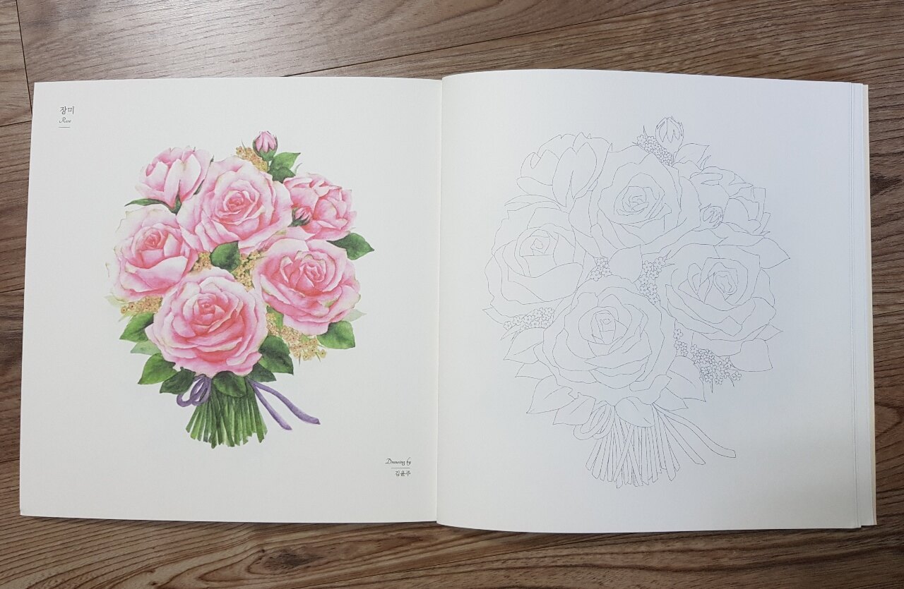 꽃다발 수채화 컬러링북에서는 중목이 사용되었다고 하네요.