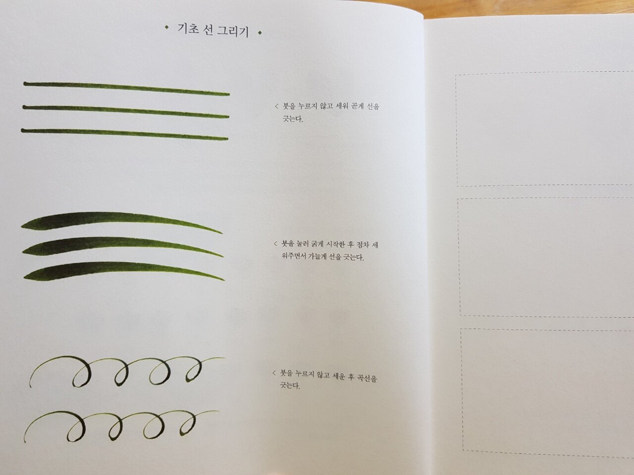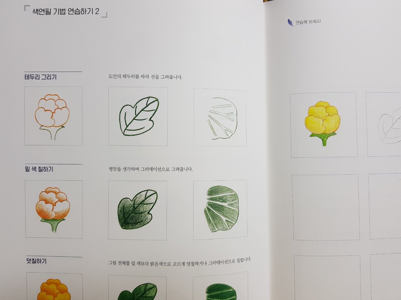 기초선그리기와 수채물감으로 채색하는 연습칸이 마련되어 있습니다.