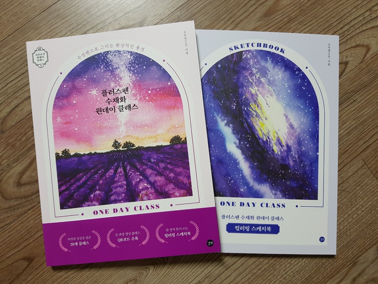 길벗출판사의 플러스펜 원디이 클래스는 기법서와 컬러링북 이렇게 두권으로 구성되어 있습니다.