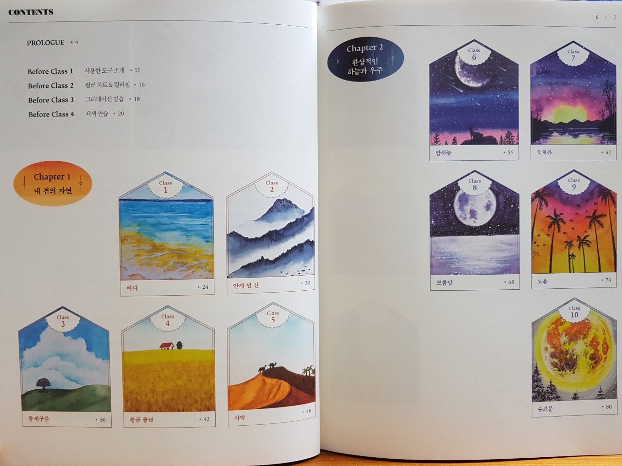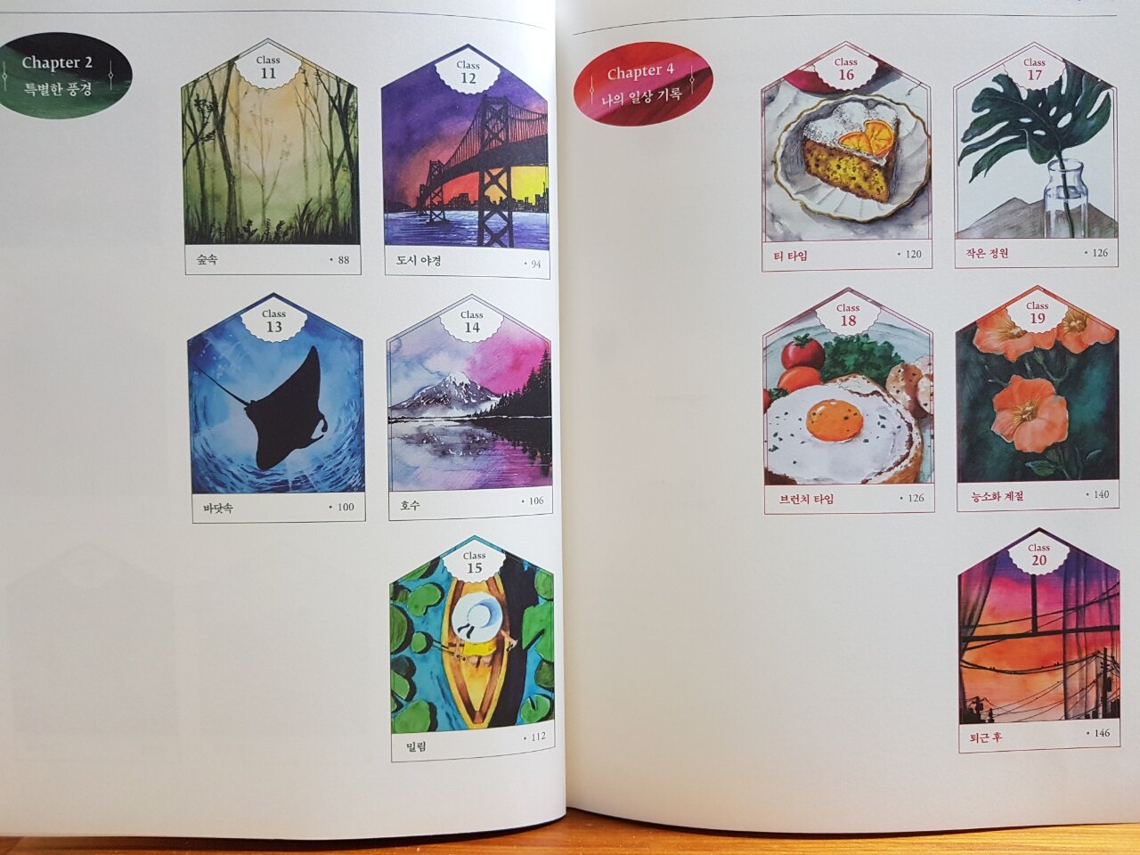 Chapter 목차에서 보시는 것처럼 20가지의 아름다운 수채화 완성작들이 한눈에 들어오게
