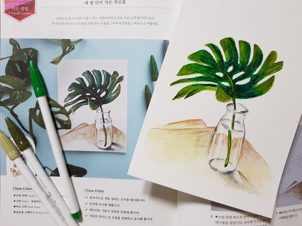 처음해보는 플러스펜 수채화였는데, 작가님의 설명을 보면서 차근차근 칠하다보니 어느 사이엔가 완성이 되어있었어요.