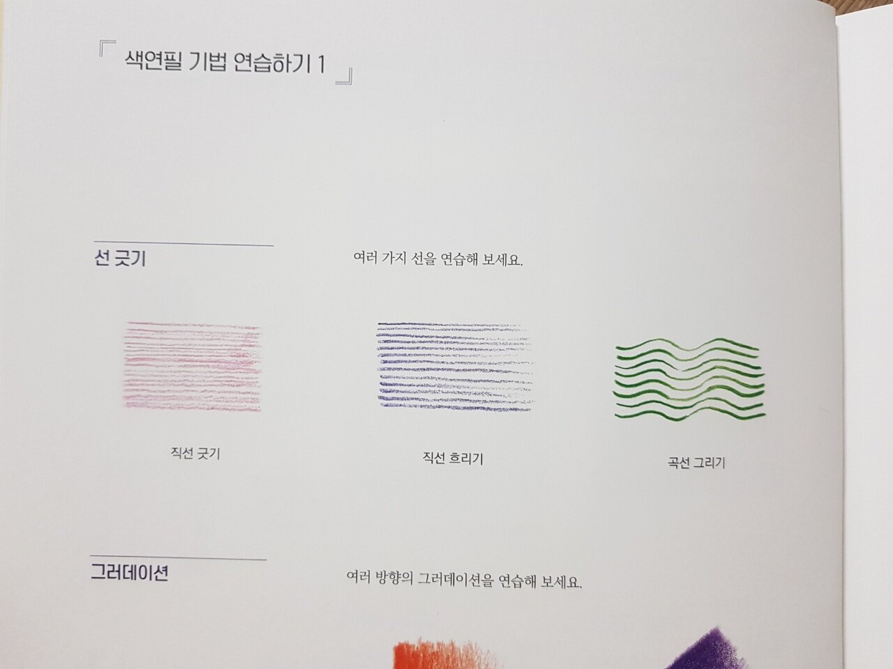 색칠을 하기 전 다양한 선들을 연습하고