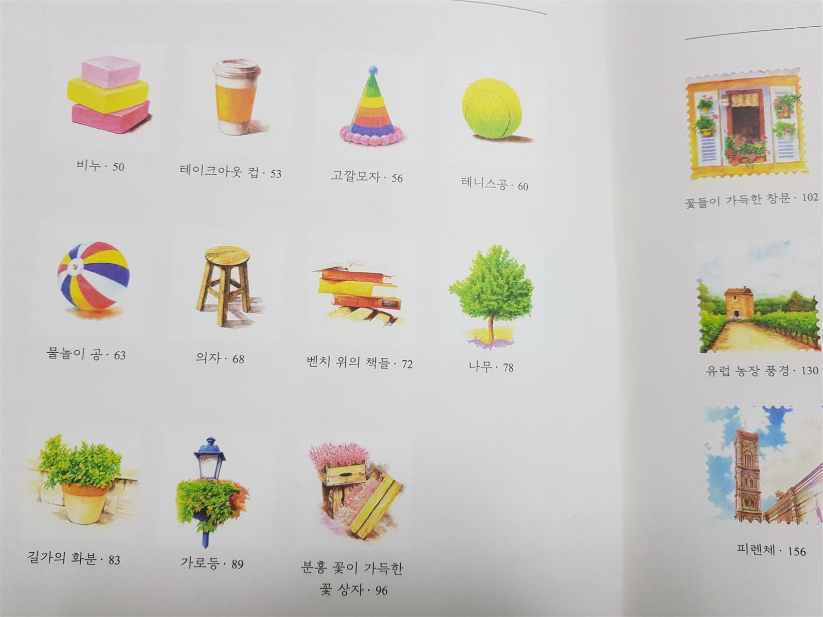 간단한 정물부터 점점 복잡한 풍경까지 단계별로 구성되어 있어요.