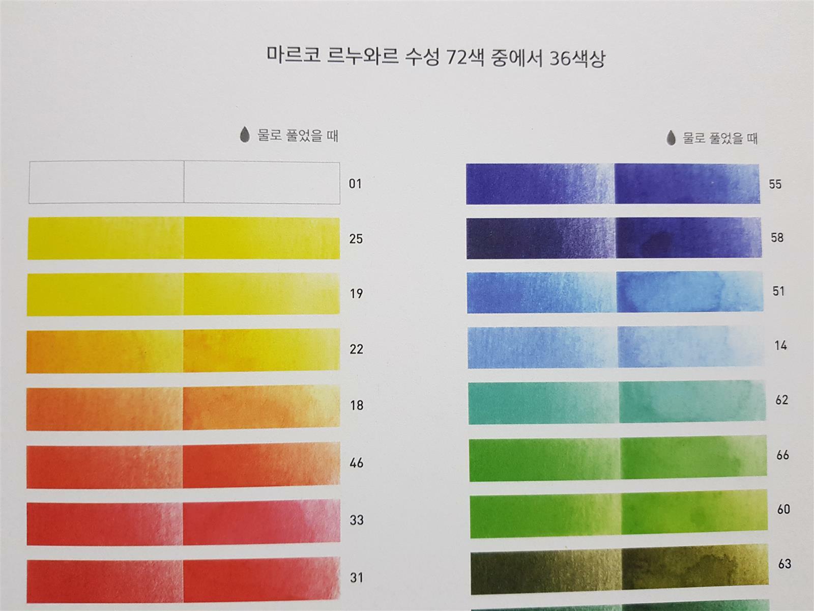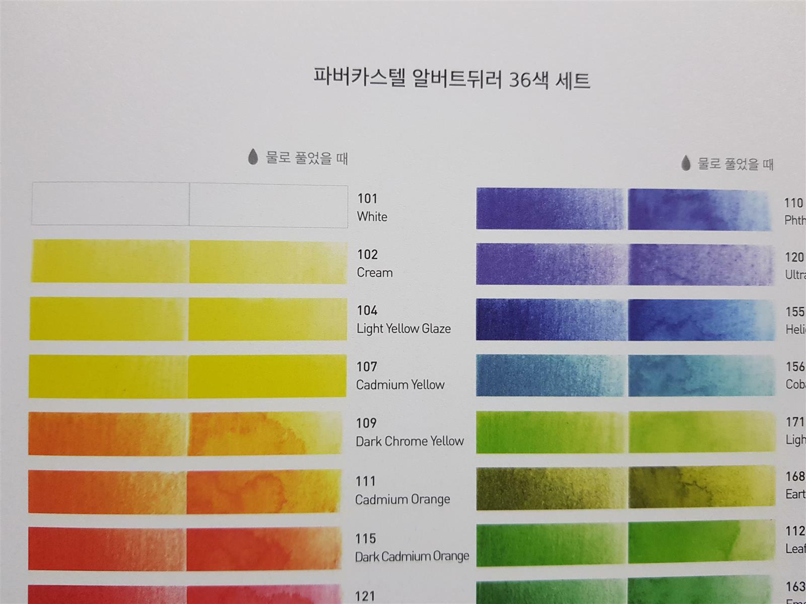 많이 사용하시는 파버카스텔 알버트뒤러와, 마르코르누와르 수성색연필을 컬러차트를