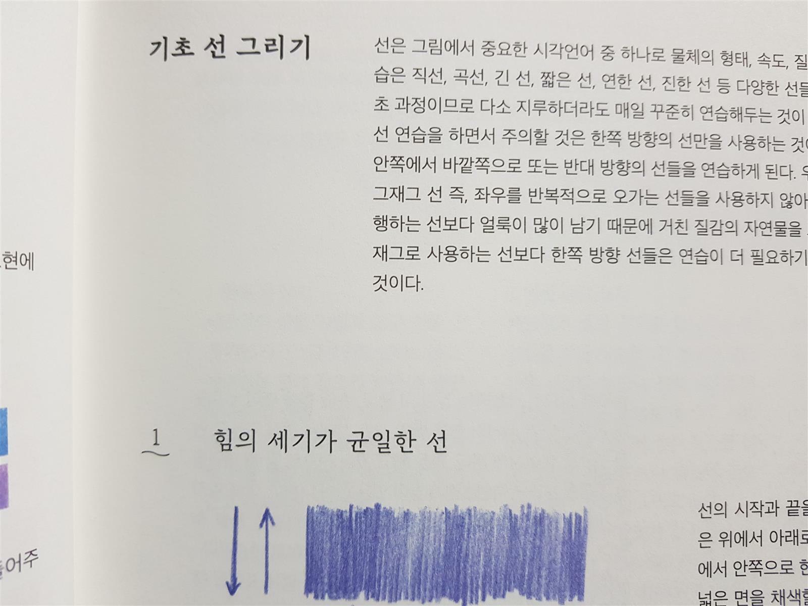 색에 대한 이해를 마치고, 기초 선 그리기가 시작됩니다.