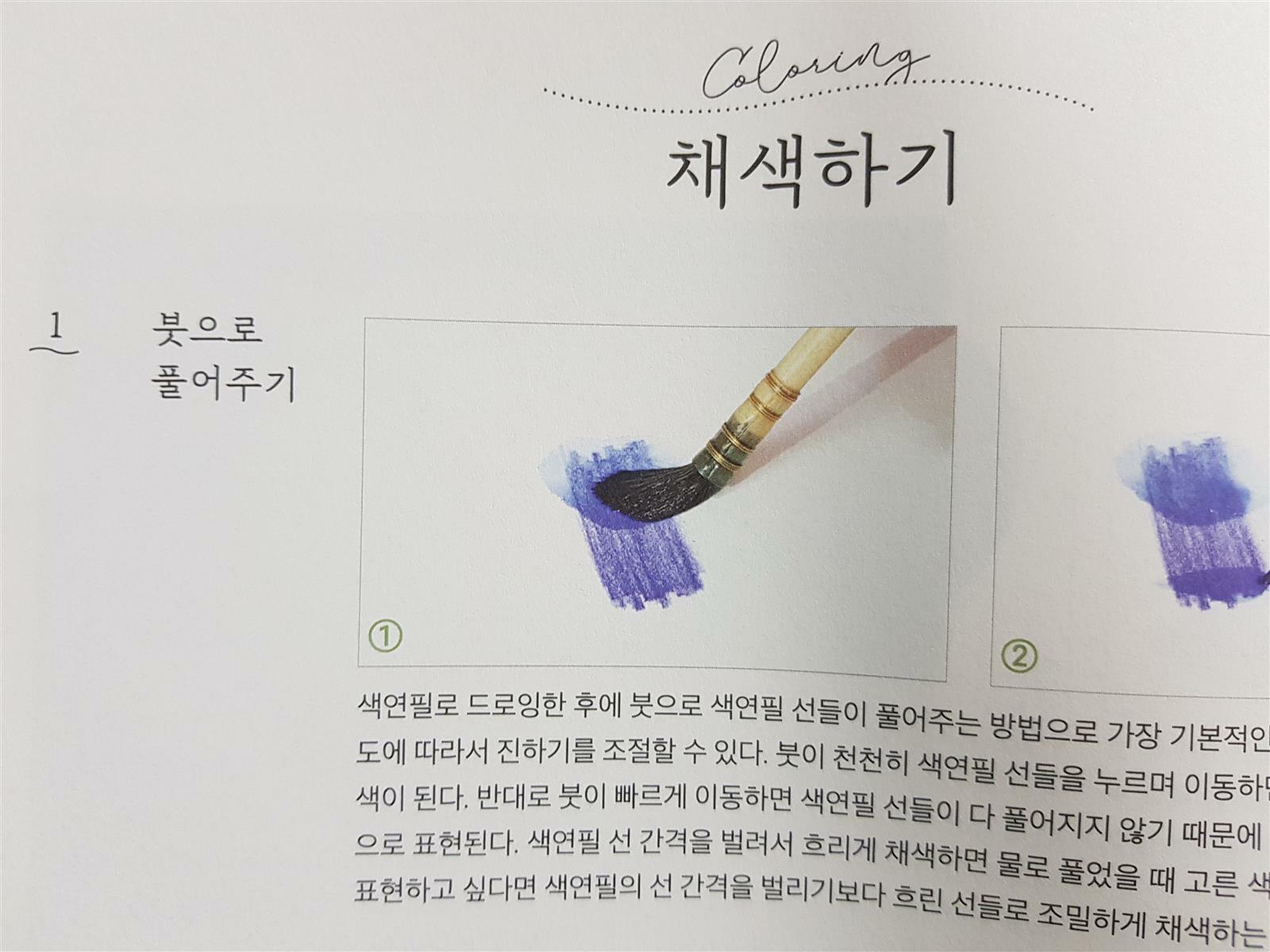 수채 색연필을 사용해서 칠할 수 있는 모든 방법을 다 알려주신 것 같아요.