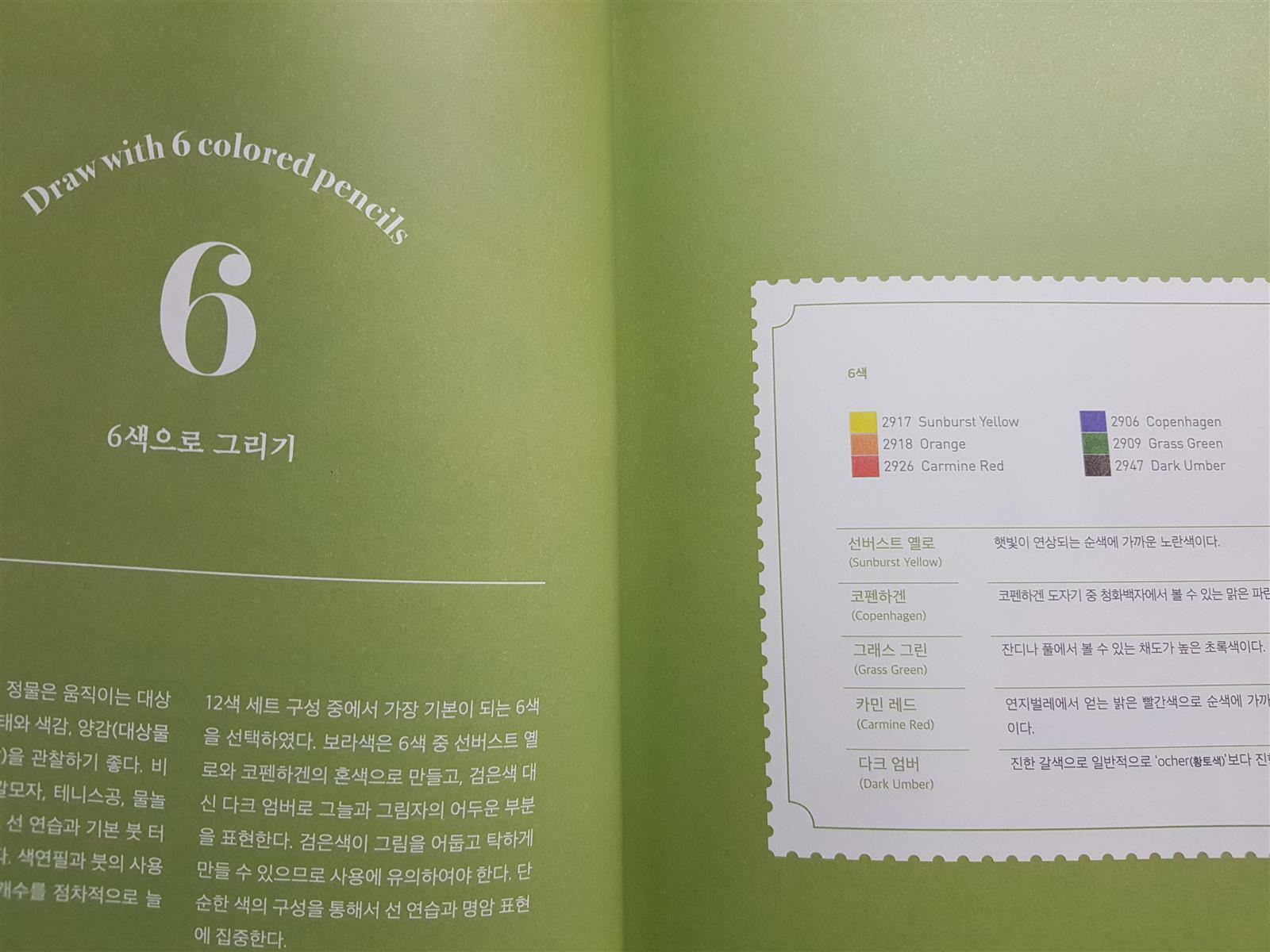 이 책에서는 프리즈마 수채색연필 36색으로 채색하는 방법을 안내해주셨는데요,