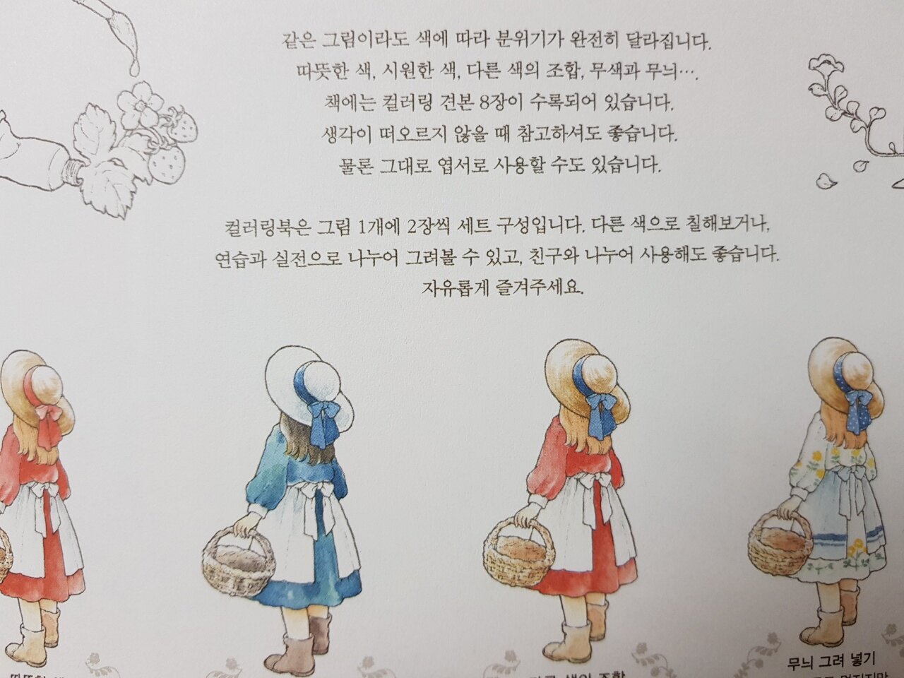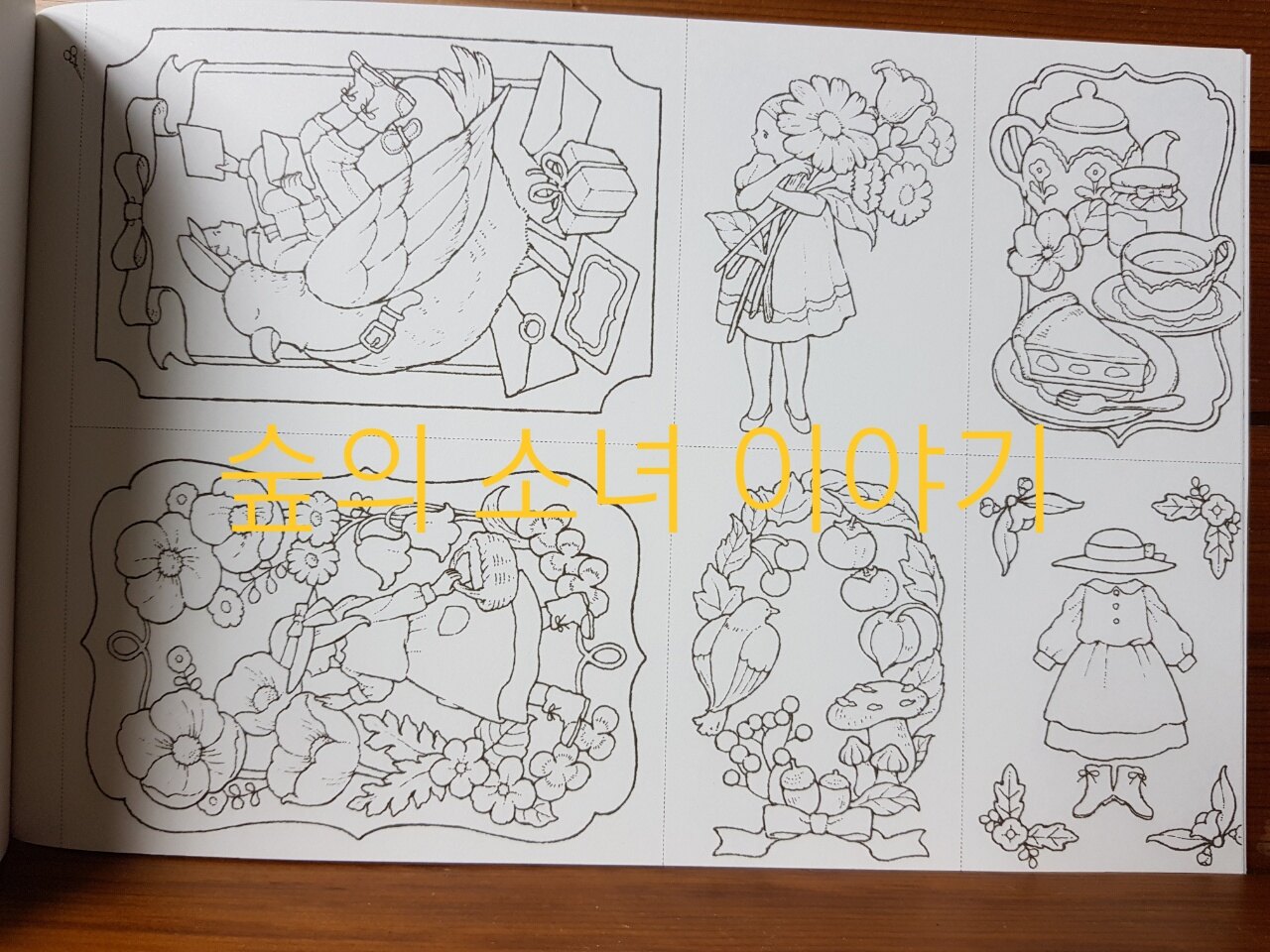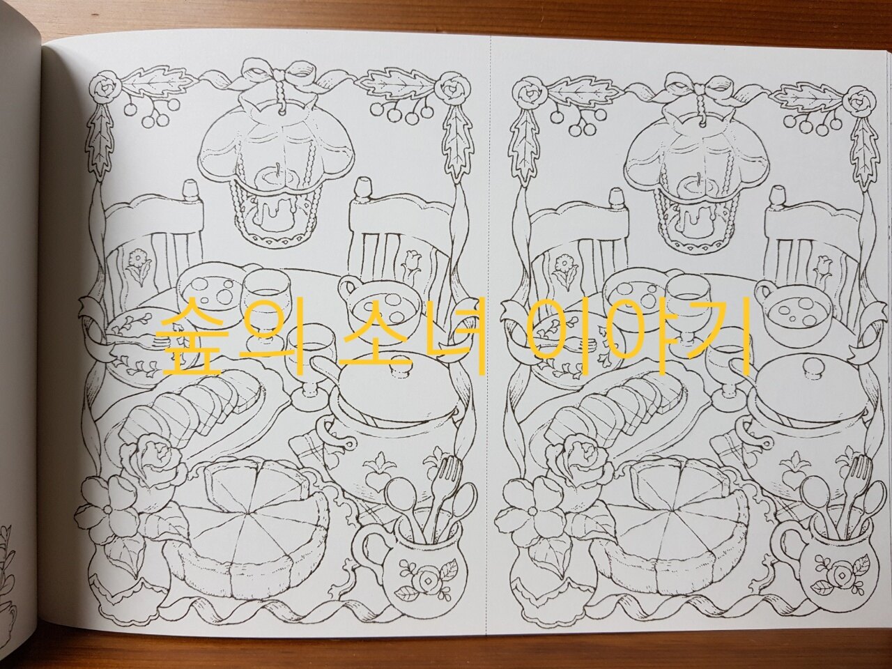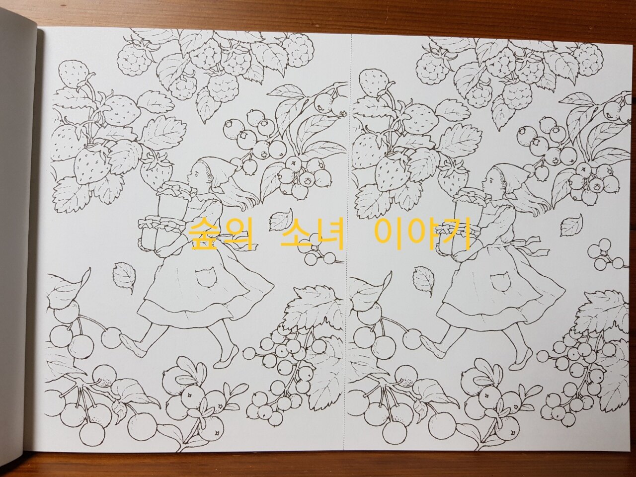 특히 숲의 소녀 이야기 컬러링 북은 그림 도안 하나마다 2장씩 세트로 구성되어 있어서,